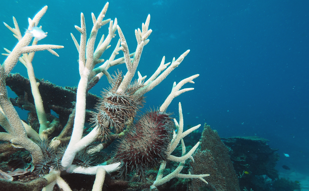 The crown of thorns starfish are unfortunately adding to this problem. You see, their favourite food is hard coral! A previous impact assessment done in 2012 at the GBR considered 3 factors for coral habitat loss (storms, bleaching and COTS) and discovered that COTS predation accounted for almost half (42%) of coral loss (De’ath et al. 2012).Â